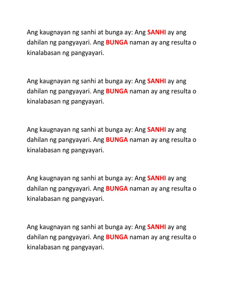 Isulat ang letra ng wastong sagot na nagsasaad ng sanhi at. Paraan at Resulta Nagpapakita. Ang bunga ay ang resulta o kinalabasan ng sanhi o dahilan.