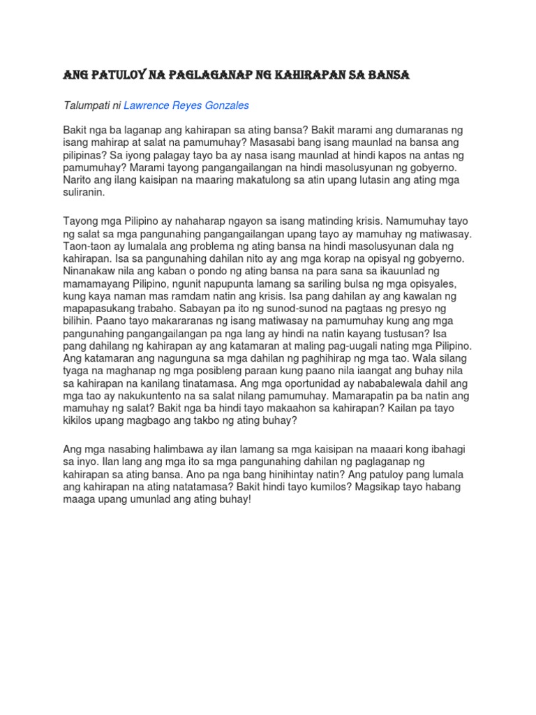Gave life interaction to tax life no more life. Ang pinakadakilang utos ng Diyos. Ang kahirapan ang isa sa mga mabibigat na problema ng ating bansa simula pa nuon hangang ngaun.
